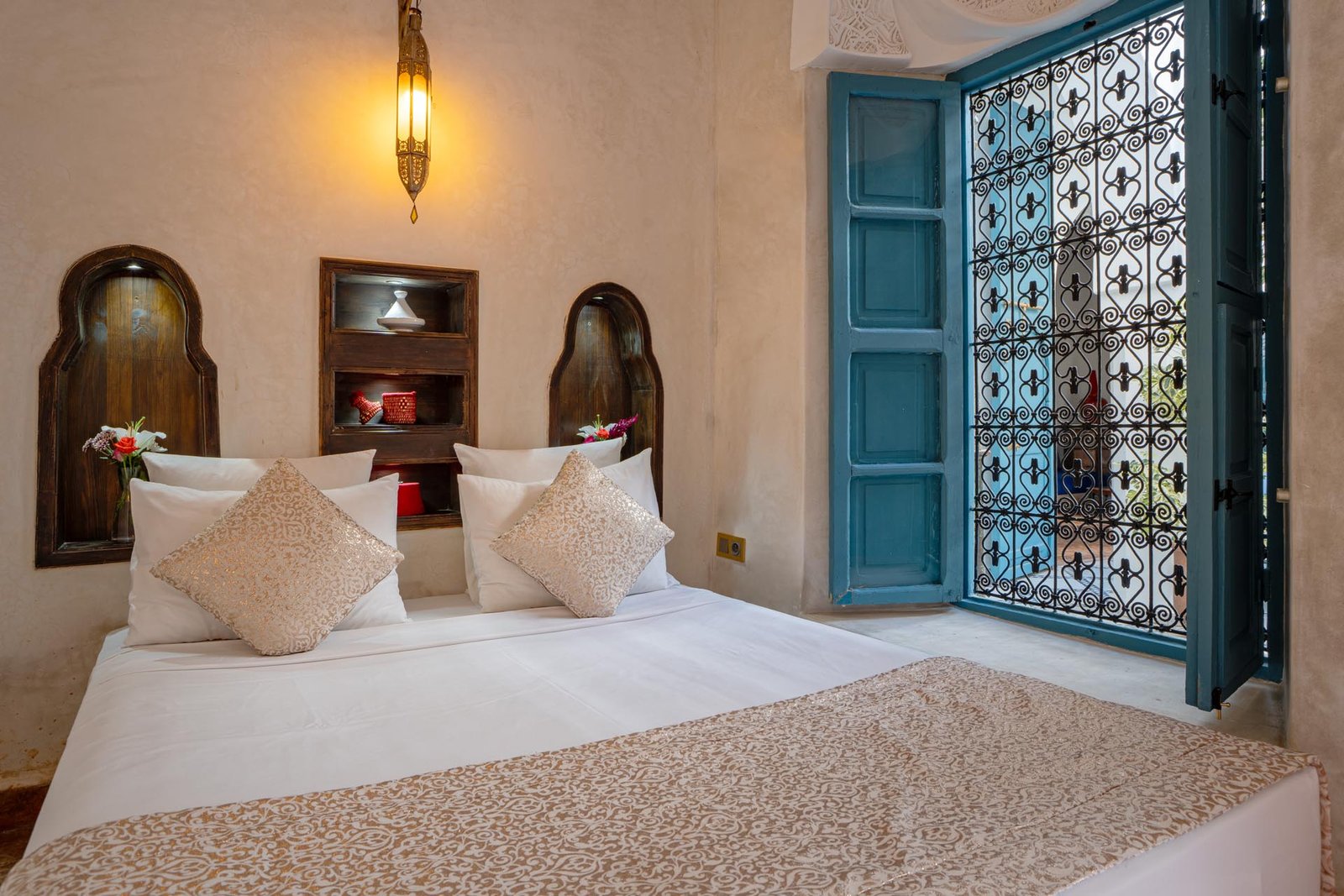 Reservar la Habitación Oasis del Patio Marrakech en el Riad Khalifa garantiza una estancia donde autenticidad, comodidad y refinamiento se combinan. Cada detalle ha sido diseñado para que se sienta como en casa, en un entorno pacífico y encantador.