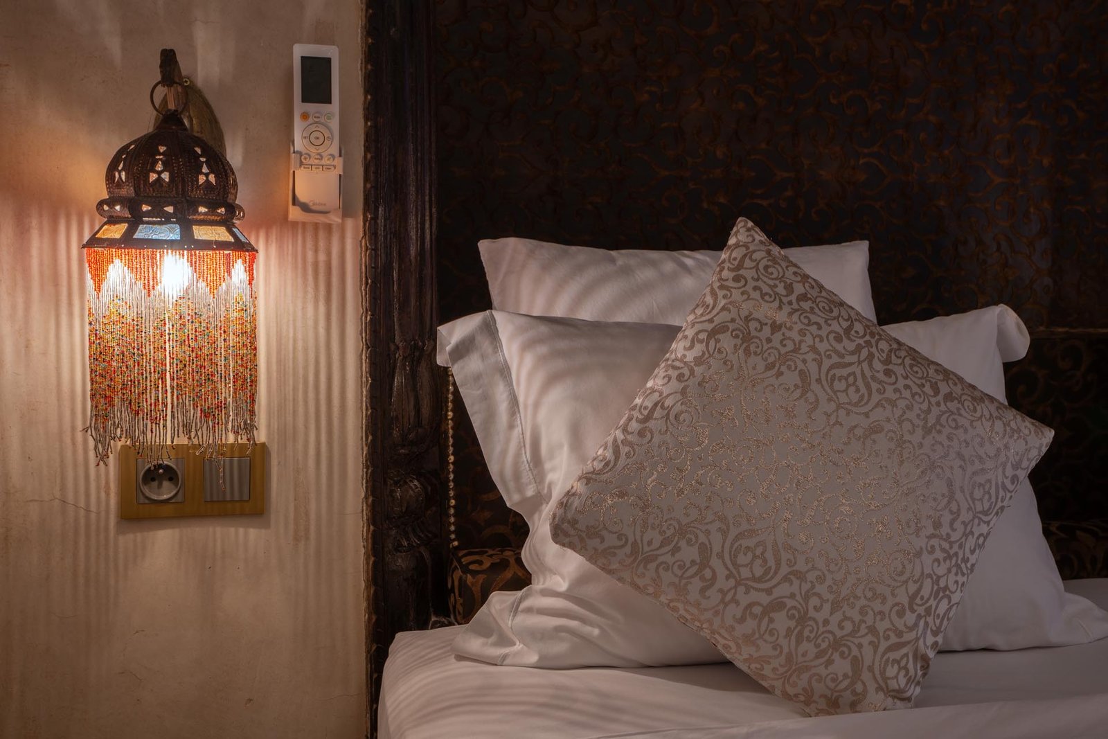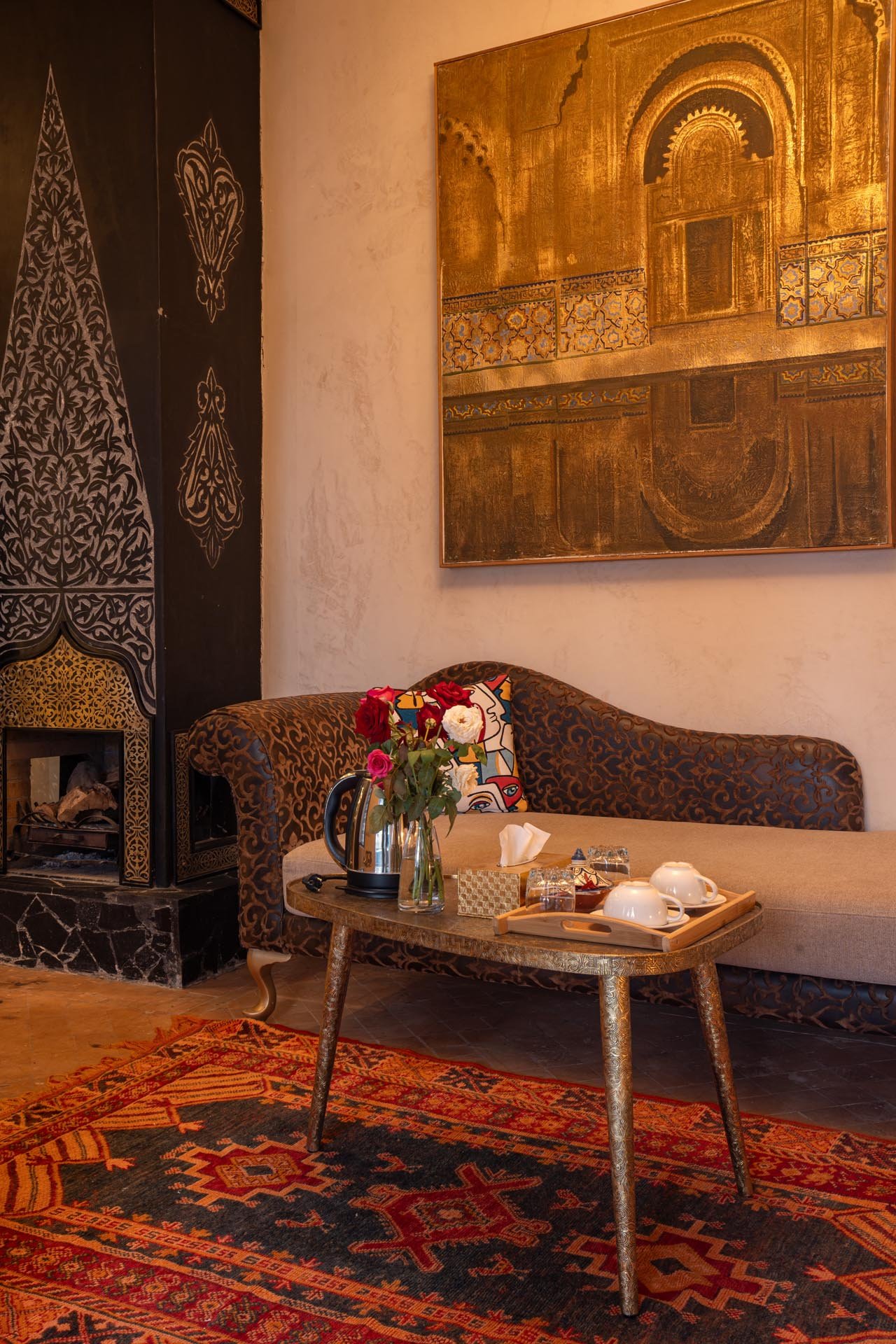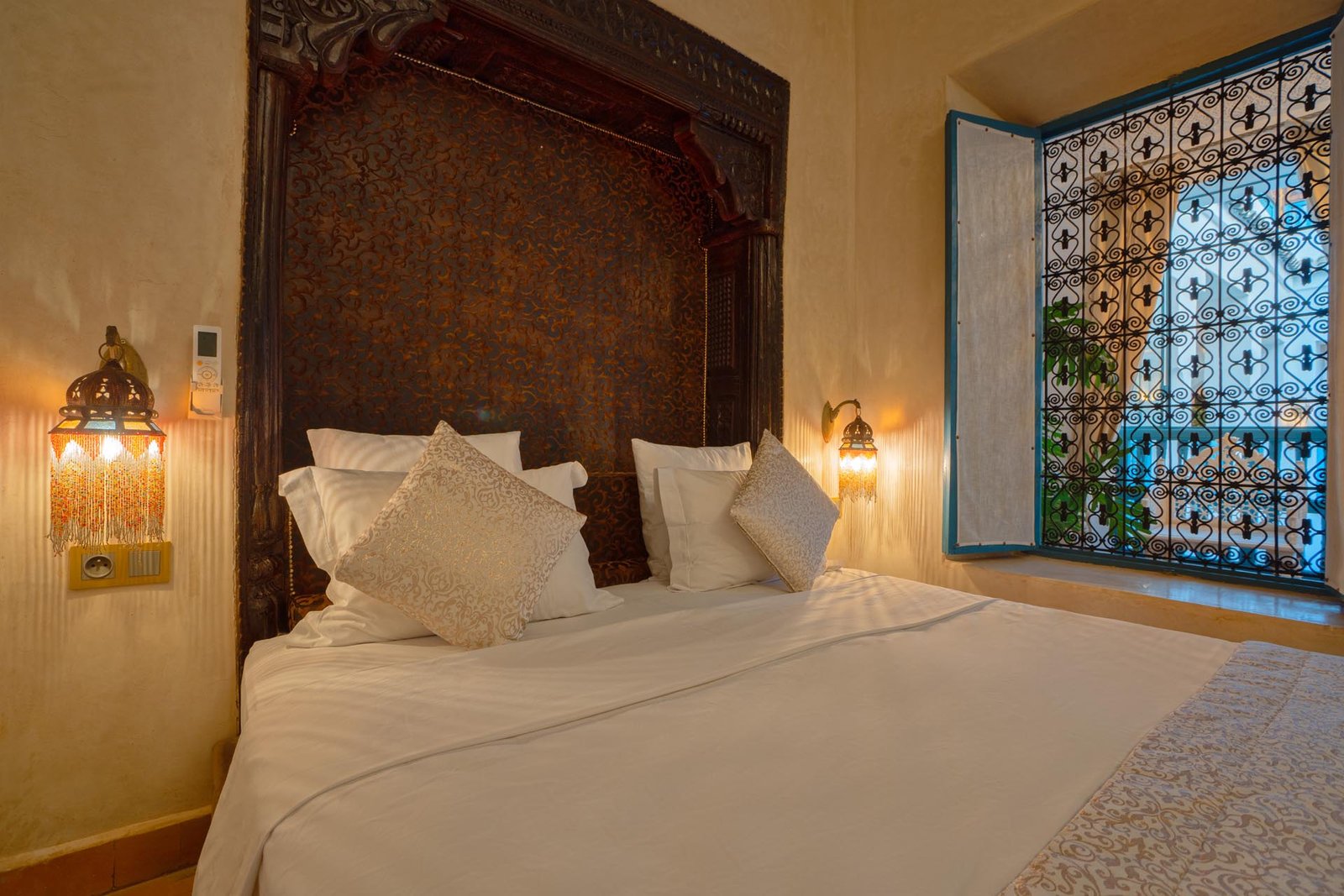 Cada detalle refleja la artesanía local: madera tallada, tejidos bordados y mosaicos intrincados. Los huéspedes se sumergen en un universo auténtico donde la tradición se encuentra con la modernidad.