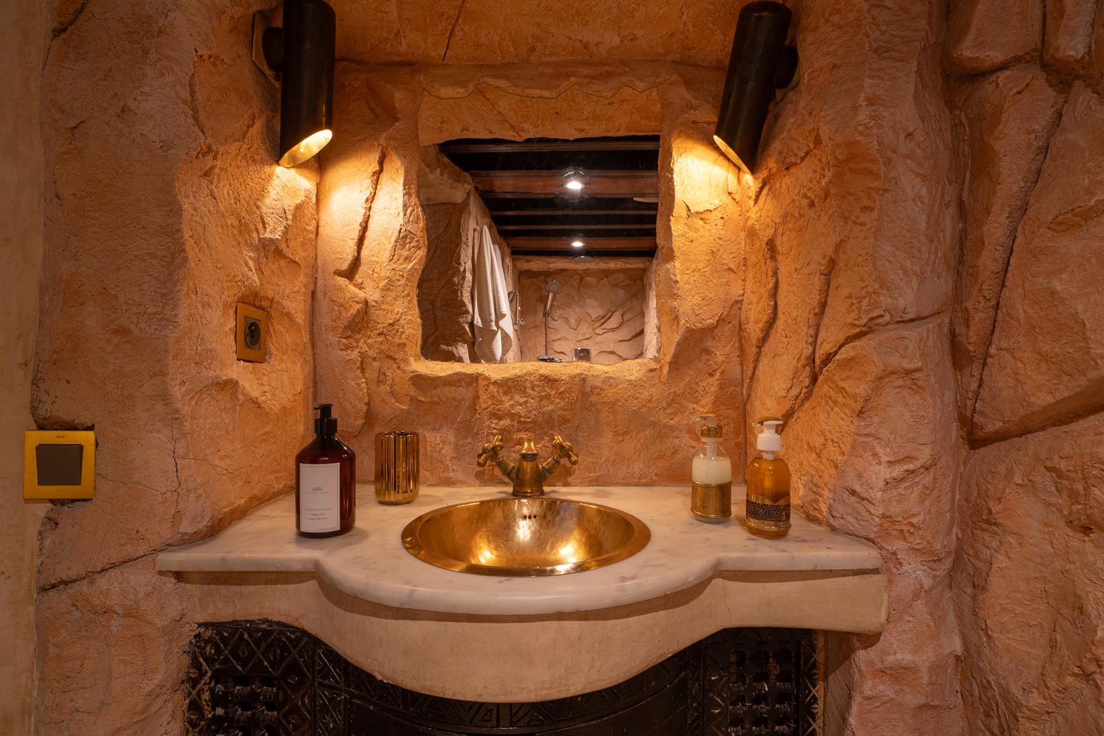 La Chambre Troglodyte Marrakech au Riad Khalifa est une expérience unique pour les familles ou groupes à la recherche d’un séjour authentique. Creusée dans les formations rocheuses naturelles, cette chambre allie le charme de l’architecture traditionnelle marocaine au confort moderne.