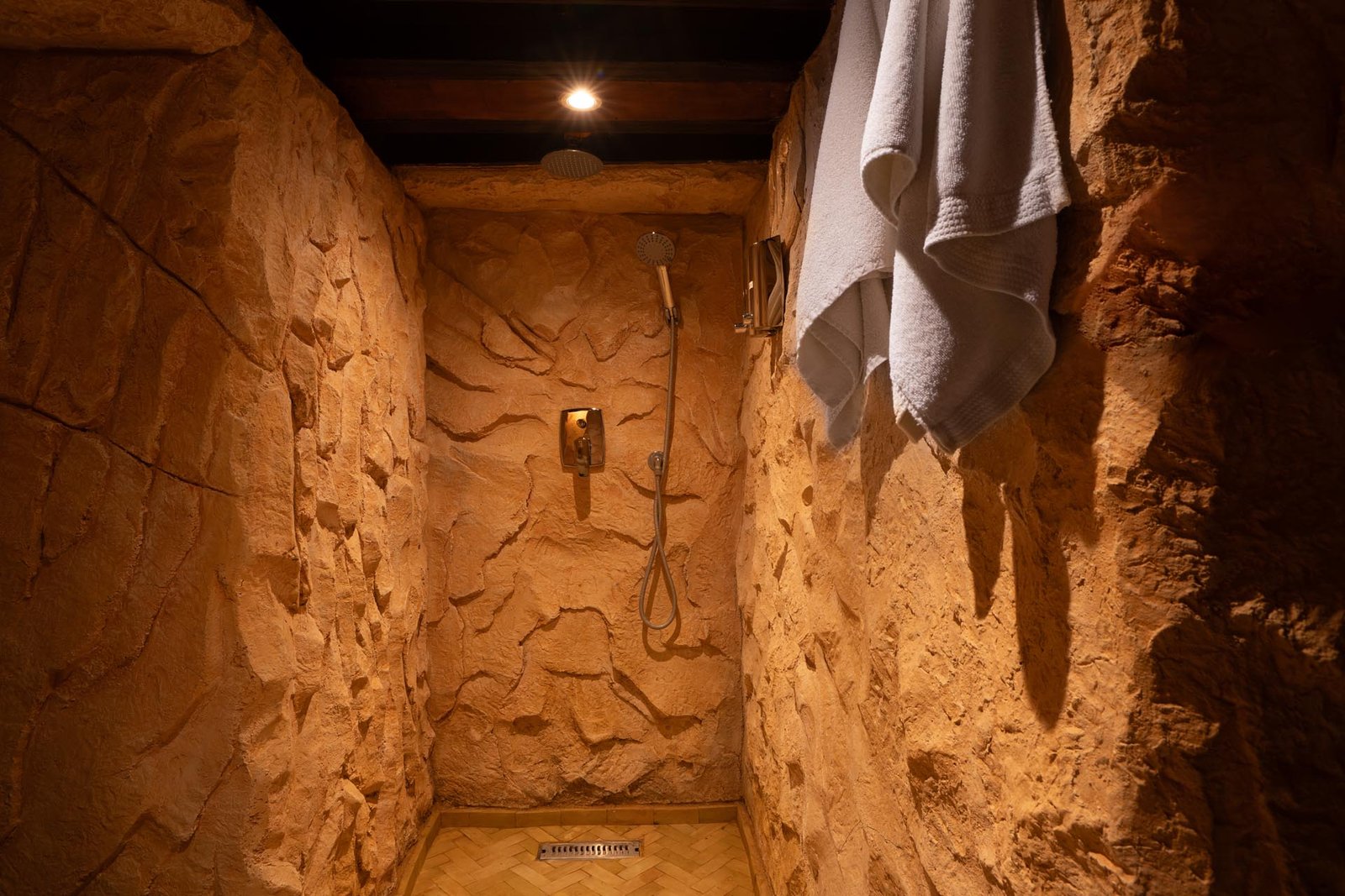 Spacieuse et lumineuse, la Chambre Troglodyte Marrakech peut accueillir jusqu’à 4 personnes grâce à un lit king-size et deux lits simples. La salle de bain privée est équipée d’une douche à l’italienne, d’un sèche-cheveux et de produits de toilette de qualité. La climatisation assure un confort optimal tout au long de l’année, et le Wi-Fi gratuit permet de rester connecté.
